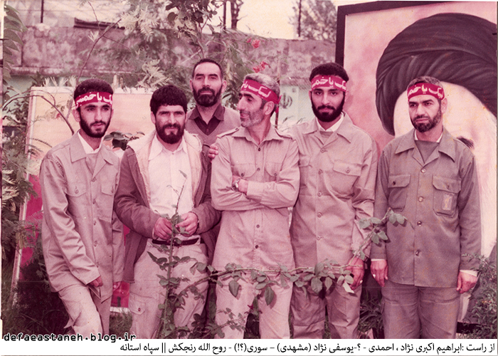 از راست : ابراهیم اکبری نژاد ، احمدی ، کیومرث تقی پور ، یوسفی نژاد (مشهدی) ،سوری(؟؟) ، روح الله رنجکش